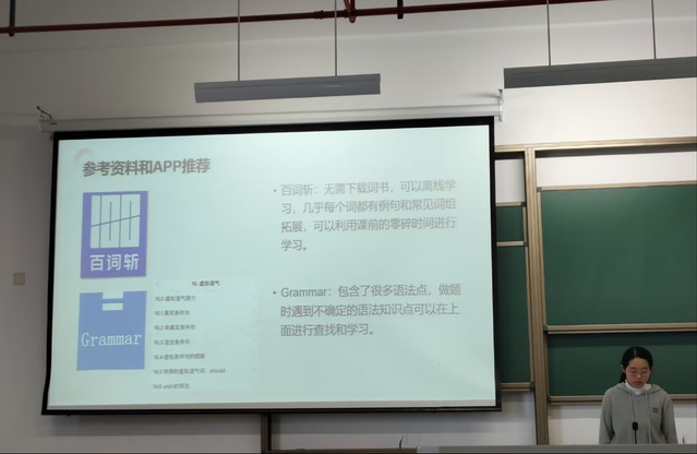 在分享环节,几位来自大三的同学轮流上台,她们不仅成绩优异,而且在专四考试中取得了骄人的成绩。她们从不同的角度出发,为在场的学弟学妹们分享了丰富的备考策略和实用的考试技巧。首先,野浩迪同学从听力、阅读、写作和语法词汇等对专四的题型进行了详尽的介绍,她根据每个题型的特点,分享了相应的答题技巧和策略。她建议在听力部分,考生要注意捕捉关键信息,并在听的过程中做好笔记;在阅读部分,她强调快速阅读和细节理解的重要性。许沐华同学则分享了她个人认为非常有用的学习APP和资料。此外,她还分享自己的备考策略,包括如何合理安排学习时间,以及如何通过模拟考试来检测自己的学习效果。刘银凤同学在分享中强调,考生既不应轻视专四考试,也不应过分紧张。她特别强调了单词基础的重要性,并建议考生通过每日的词汇练习来巩固和扩大词汇量。她提醒考生,良好的词汇基础是成功通过专四考试的关键。最后,历雪婷同学通过专四的真题样例,详细讲解了在考试中应注意的事项。她列举考生在答题时常见的错误,并提供避免这些错误的策略。