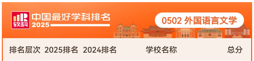 2025年10月15日,高等教育评价专业机构软科正式发布“2025软科中国最好学科排名”,我院外国语言文学学科继续打榜中国最好学科榜前50%,全国高校排名从第114位提升至第109位,位居省内第十。