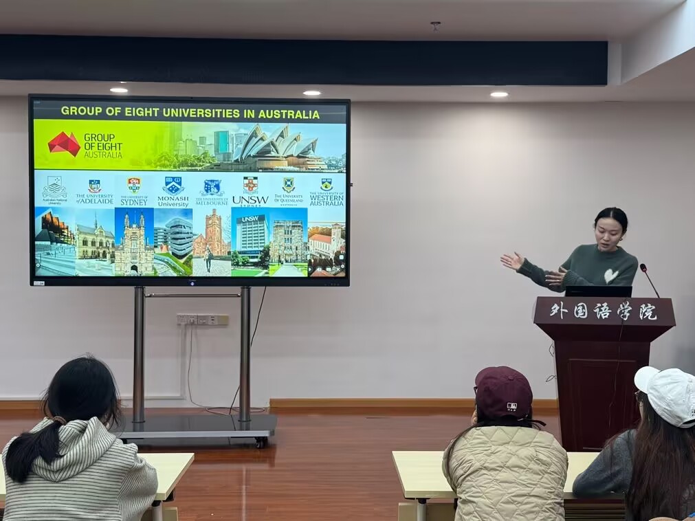 为系统推进学生升学深造工作,构建国际化人才培养支持体系,外国语学院英语系和翻译系近期统筹策划并成功举办了两期“留学生活之我见”留学经验分享系列讲座。该系列活动作为系部“卓越学子托举工程”与“升学护航系统工程”的关键组成部分,旨在通过整合院内外优质资源,为各年级学生提供全景式、精准化的留学规划指导。